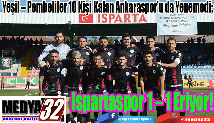 Ispartaspor, dün kendi saha ve seyircisi önünde karşılaştığı Sincan Belediye Ankaraspor takımı ile 1 – 1 berabere kalarak altın değerinde 2 puan daha kaybetti. 25 Dakika 10 kişi oynayan rakibine gol atmayı başaramayan Yeşil – Pembeli ekip, beşinci haftada da galibiyet yüzü göremedi.