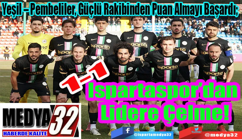 2. Lig Kırmızı Grupta Isparta’yı temsil eden Ispartaspor ligin 23. Hafta maçında güçlü rakibinden bir puan almayı başardı. Isparta Atatürk Stadyumunda Lider Bursaspor ile karşı karşıya gelen Yeşil – Pembeli ekip, özellikle maçın ikinci yarısının başında rakibine göre daha etkili bir futbol ortaya koydu.